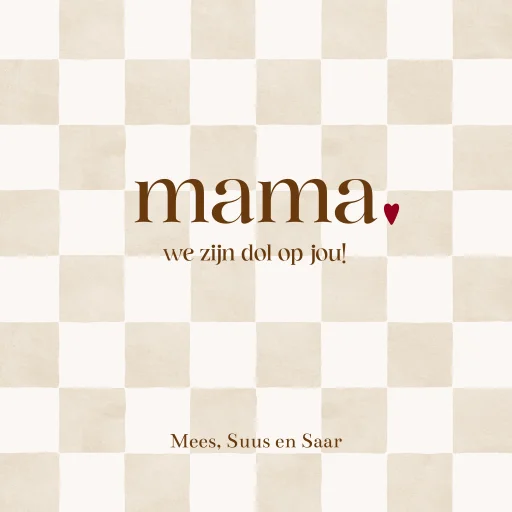 Met de tekst ‘mama, we zijn dol op jou!’ is dit tegeltje een liefdevol en persoonlijk cadeau voor Moederdag. Onderaan is er ruimte voor namen, zodat je het tegeltje extra bijzonder maakt met bijvoorbeeld de namen van de kinderen.