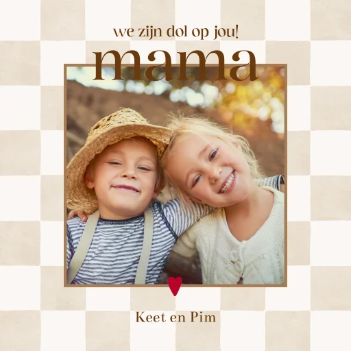 Voeg eenvoudig een eigen foto toe en combineer deze met een persoonlijke tekst, zoals ‘we zijn dol op jou mama’. Onderaan is er ruimte voor namen, zodat je het tegeltje helemaal naar wens kunt maken.