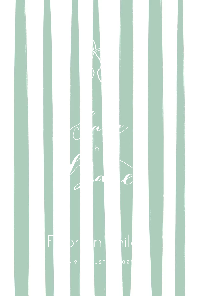 Vrolijke Save the Date kaart met pastel groene streep en goudfolie opdruk, gedrukt op doorzichtig kalkpapier. Een kleurrijke kaart voor zomerse bruiloften of bruiloften in het buitenland, zoals Spanje, Italië of Frankrijk.