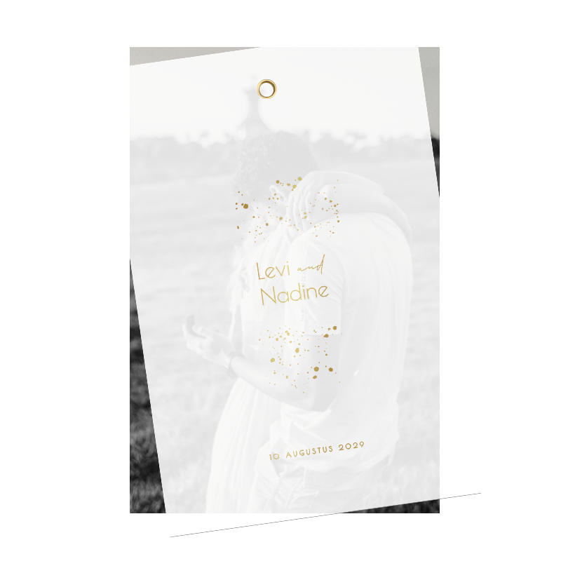 Trouwkaart kalkpapier goudfolie spetters