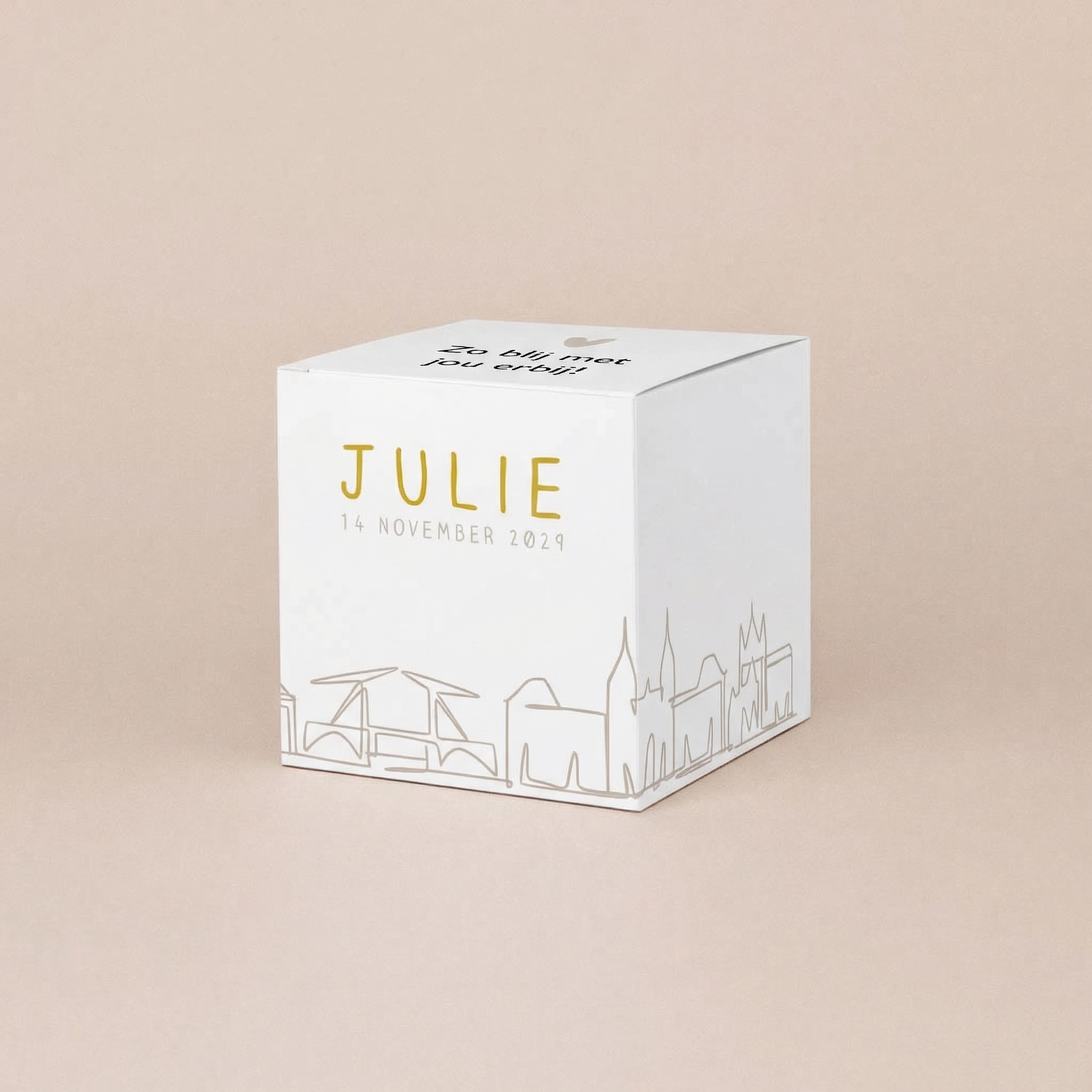 Met dit kubusdoosje maak je van je doopsuikers een echt cadeautje. Ontwerp het doosje in de stijl van je geboortekaartje en geef familie en vrienden een persoonlijk bedankje mee. De doosjes worden plat geleverd en zijn eenvoudig zelf te vouwen. Handig en leuk om alvast te doen tijdens je verlof.