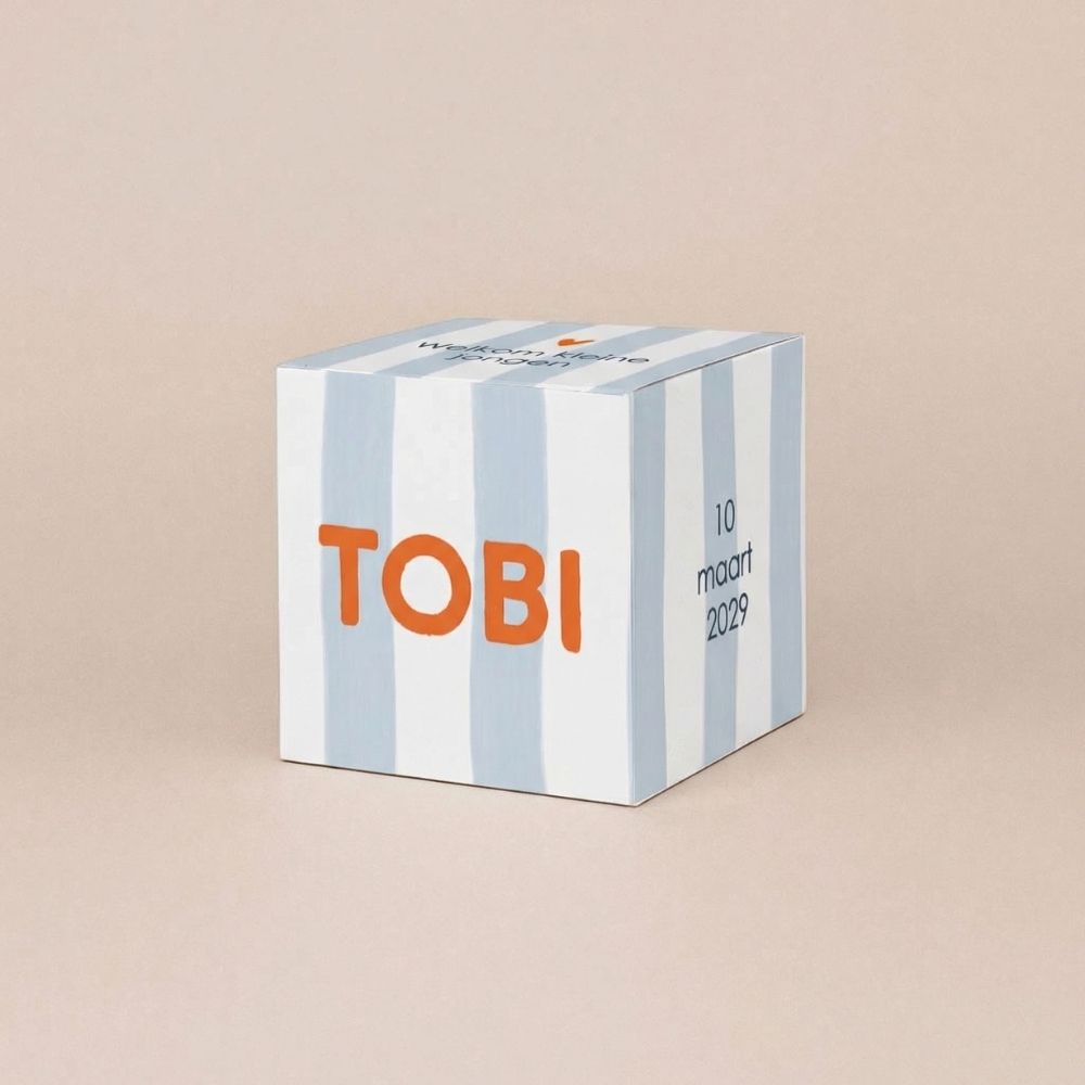 Met dit kubusdoosje maak je van je doopsuikers een echt cadeautje. Ontwerp het doosje in de stijl van je geboortekaartje en geef familie en vrienden een persoonlijk bedankje mee. De doosjes worden plat geleverd en zijn eenvoudig zelf te vouwen. Handig en leuk om alvast te doen tijdens je verlof.