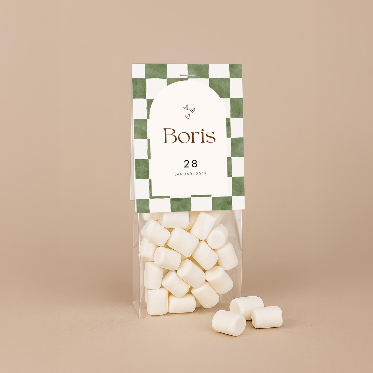 Dit vouwkaartje met geblokt design maakt van jouw doopsuikers een echt cadeautje. Bedank vrienden en familie in de stijl van je geboortekaartje voor alle lieve wensen en attenties. Bestel de transparante zakjes direct mee, zodat je het bedankje compleet kunt maken. Vul ze met snoepjes of doopsuikertjes, niet het kaartje vast en je hebt een prachtig geboortebedankje. Een heerlijk klusje om tijdens je verlof alvast te doen!
