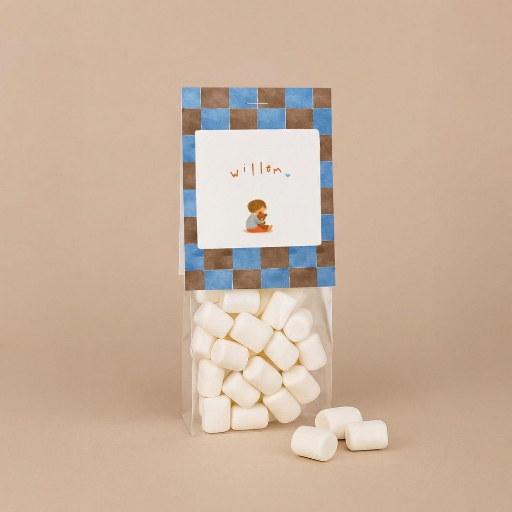 Dit vouwkaartje met jongetje met knuffelbeer maakt van jouw doopsuikers een echt cadeautje. Bedank vrienden en familie in de stijl van je geboortekaartje voor alle lieve wensen en attenties. Bestel de transparante zakjes direct mee, zodat je het bedankje compleet kunt maken. Vul ze met snoepjes of doopsuikertjes, niet het kaartje vast en je hebt een prachtig geboortebedankje. Een heerlijk klusje om tijdens je verlof alvast te doen!