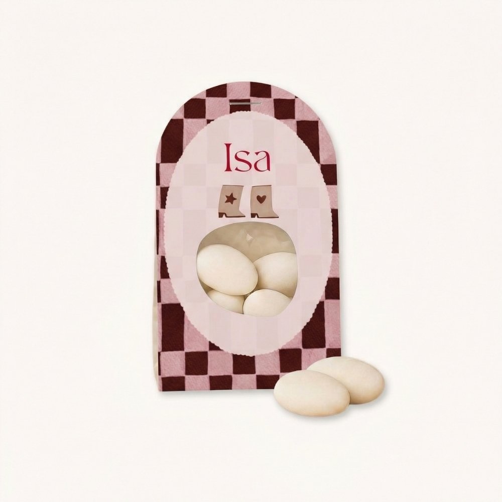 Geef je doopsuikers een mooie en persoonlijke uitstraling met dit wikkelkaartje. Mail ons voor een lijntekening van jullie gezin. Je schuift het kaartje eenvoudig om een transparant zakje heen en sluit het af met een nietje of een kleine paperclip. Zo ontstaat een stijlvol geboortebedankje dat je met liefde aan familie en vrienden kunt meegeven. De boogvorm, het zachte kleurgebruik en de luxe details zoals folie maken het kaartje extra bijzonder. In het doorkijkje past precies een doopsuiker of snoepje, waardoor het geheel meteen vrolijk oogt.