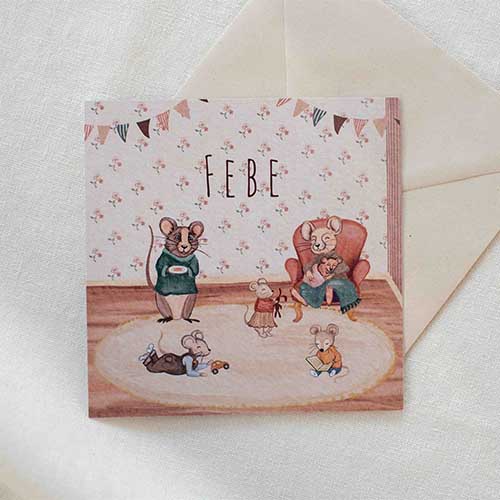 - Kelly“Bij Studio Dijs hebben wij de geboortekaartjes en een geboortetegel besteld. We zagen een bijna perfecte illustratie die probleemloos werd aangepast toen we mailden naar Studio Dijs. Hierdoor past de illustratie volledig bij ons. Onwijs blij mee en we hebben heel veel enthousiaste reacties gekregen op het kaartje!”