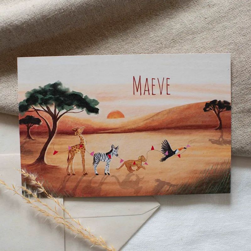 - Kelly“Bij Studio Dijs hebben wij de geboortekaartjes en een geboortetegel besteld. We zagen een bijna perfecte illustratie die probleemloos werd aangepast toen we mailden naar Studio Dijs. Hierdoor past de illustratie volledig bij ons. Onwijs blij mee en we hebben heel veel enthousiaste reacties gekregen op het kaartje!”