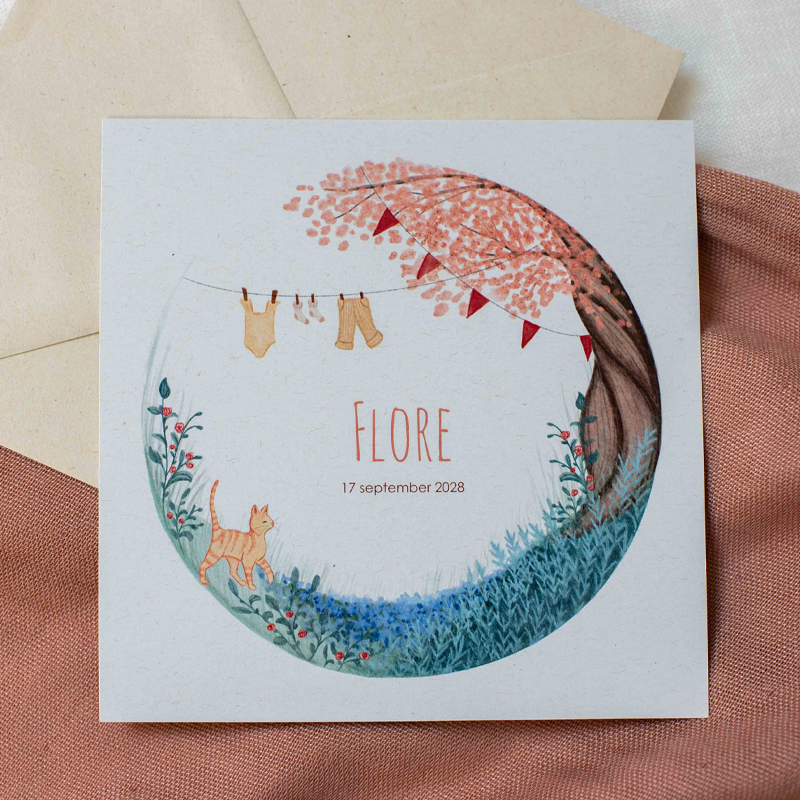 - Kelly“Bij Studio Dijs hebben wij de geboortekaartjes en een geboortetegel besteld. We zagen een bijna perfecte illustratie die probleemloos werd aangepast toen we mailden naar Studio Dijs. Hierdoor past de illustratie volledig bij ons. Onwijs blij mee en we hebben heel veel enthousiaste reacties gekregen op het kaartje!”