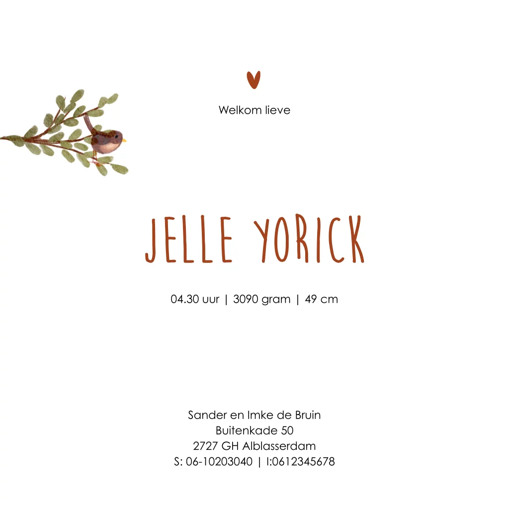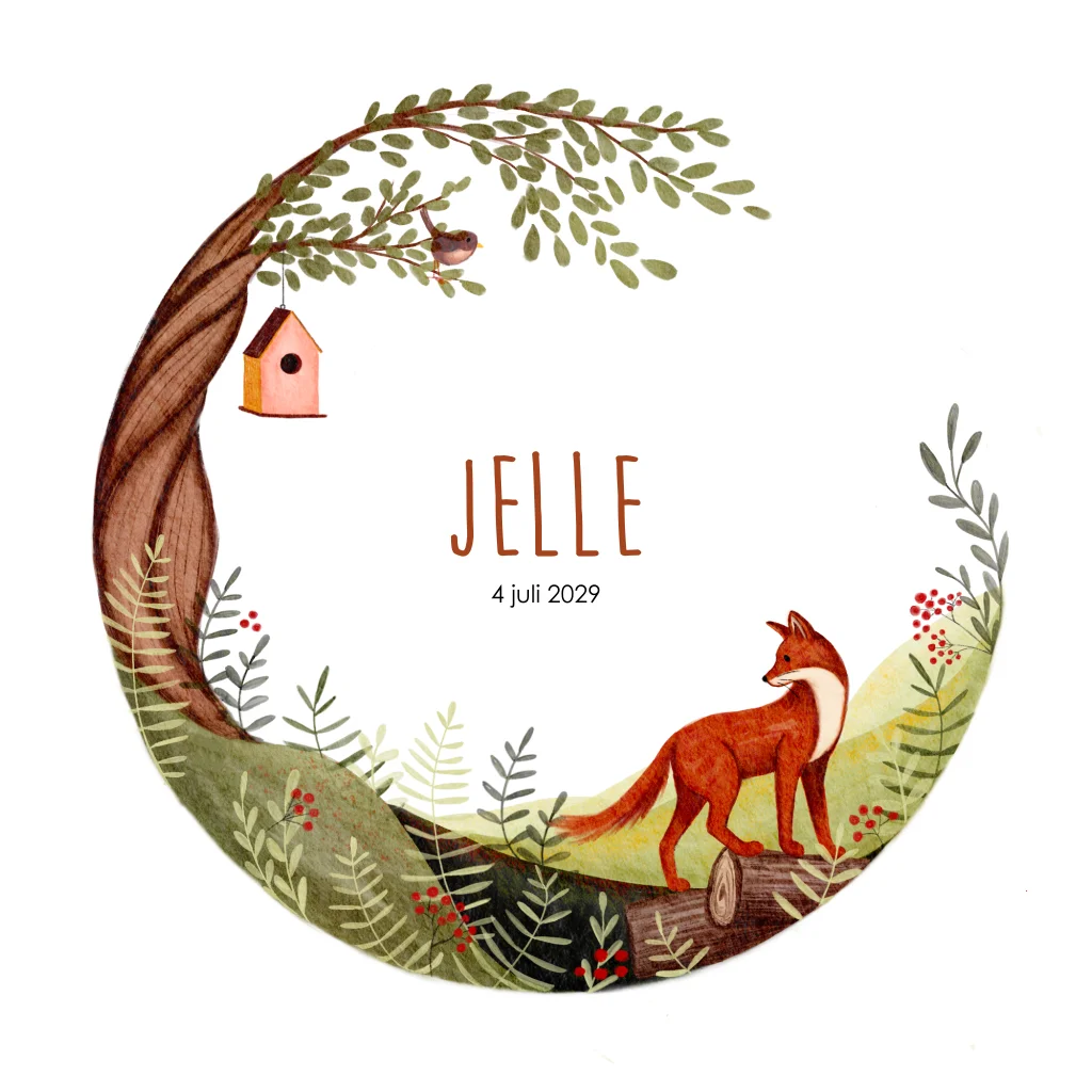 Geboortekaartje unisex vos bos boom vogel x Hannah