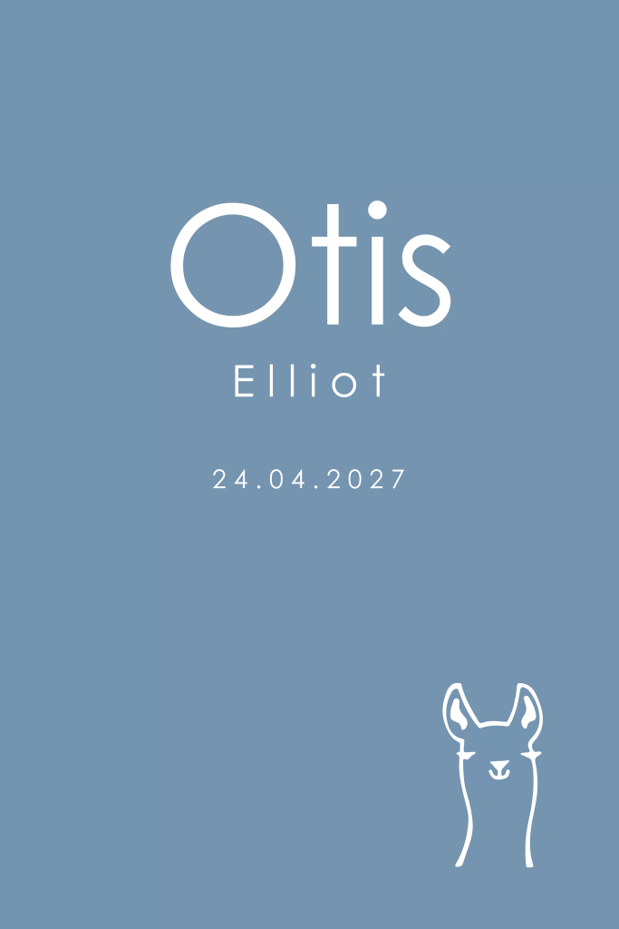 Geboortekaartje blauw met goudfolie en lama. We adviseren het papiersoort Linnen voor een extra mooi effect!