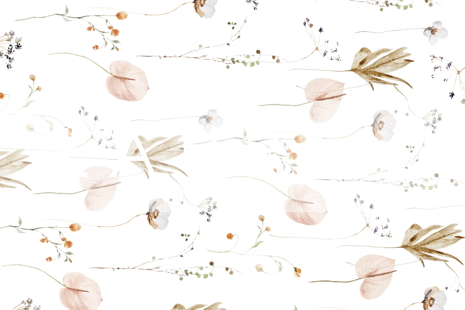 Geboortekaartje meisje met fijne bloemen en goudfolie letters op de voorzijde