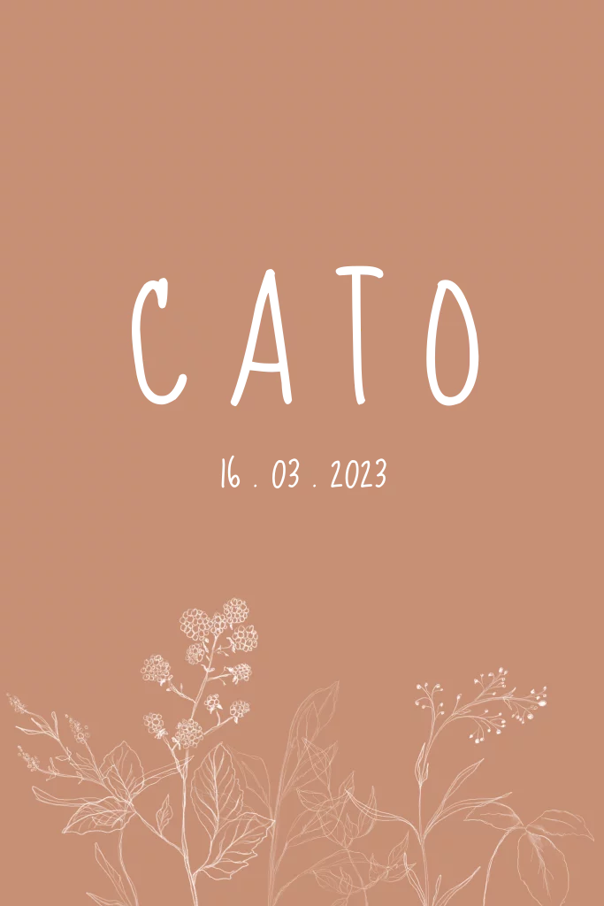 Geboortekaartje met geschetste veldbloemen en goudfolie naam op de voorkant