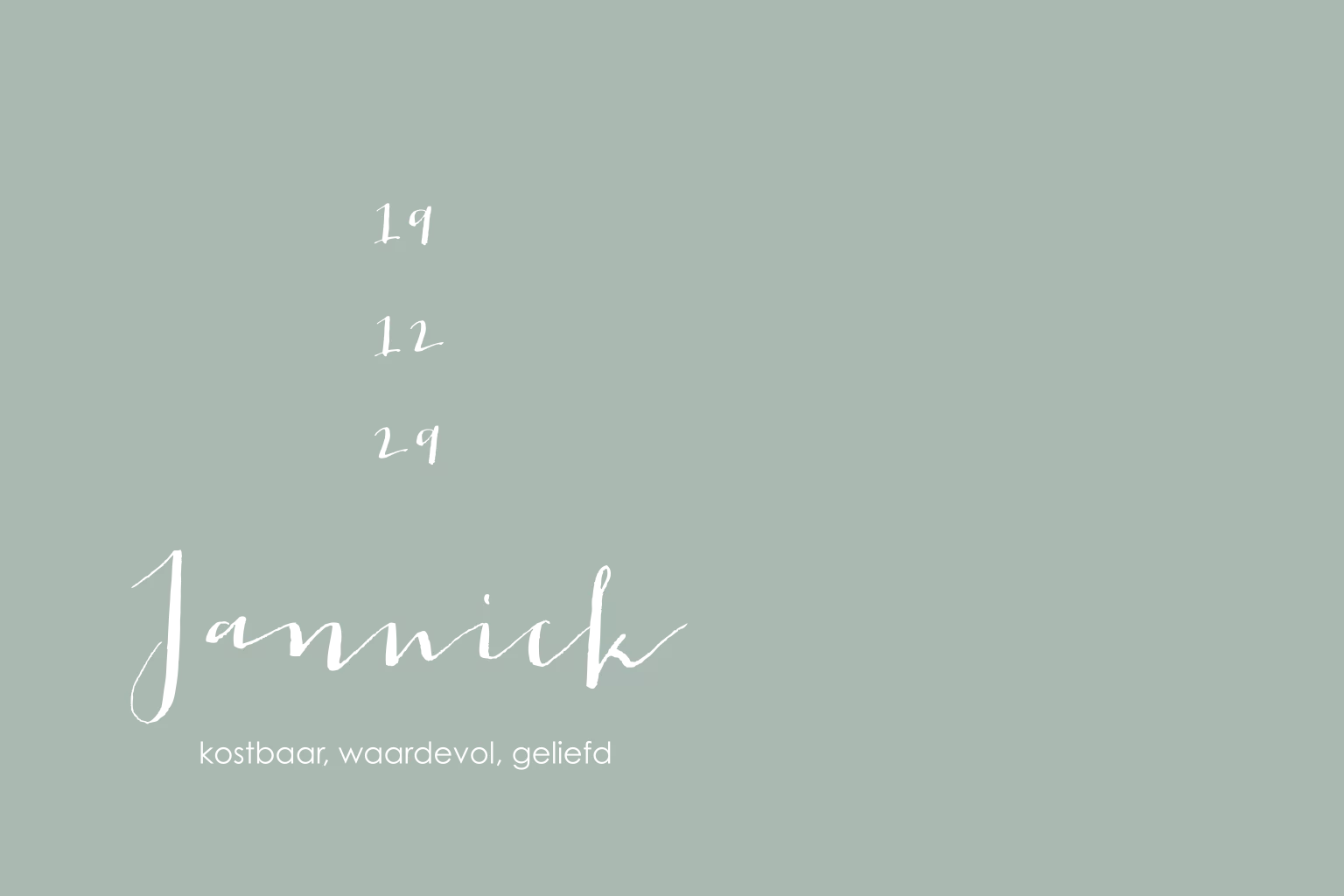 - Sanne“Heel blij met de duurzame collectie van studio Dijs. Zo kun je toch op een iets verantwoordelijke manier je geboortekaartjes versturen. Ze zijn prachtig geworden, ook het geboortebord is echt een aanrader! De kleuren maar ook het gemak van het aanpassen!”