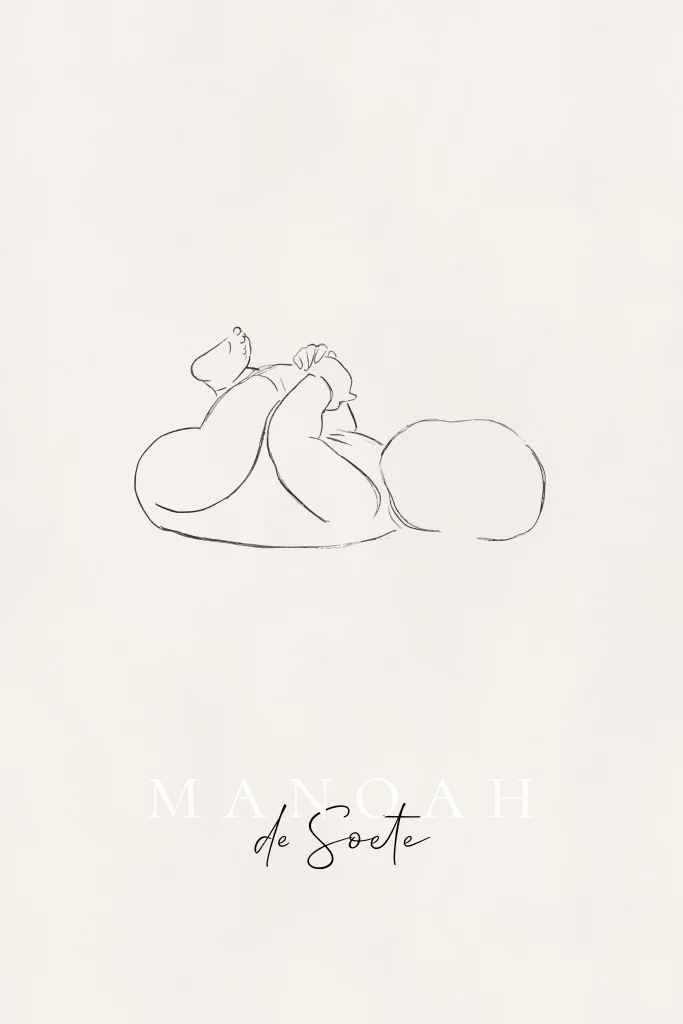 Poster van een geschetst baby'tje. De naam is in goudfolie voor een extra mooi effect.