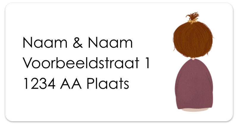 Adresstickers met een eigenwijs meisje met bruine haren. Onder Afbeeldingen vind je meer soorten meisjes en jongetjes. Pas je eigen adresstickers makkelijk aan in de online editor. - 14 adresstickers per vel - formaat 65x34 mm - ronde hoeken