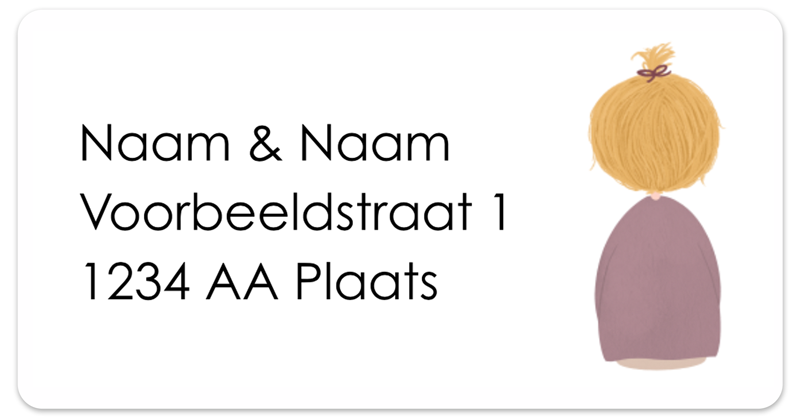 Adresstickers met een eigenwijs blond meisje. Onder Afbeeldingen vind je meer soorten meisjes en jongetjes. Pas je eigen adresstickers makkelijk aan in de online editor. - 14 adresstickers per vel - formaat 65x34 mm - ronde hoeken