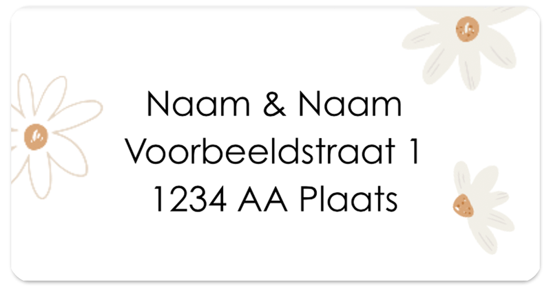 Adresstickers met madeliefjes - 14 adresstickers per vel - formaat 65x34 mm - ronde hoeken