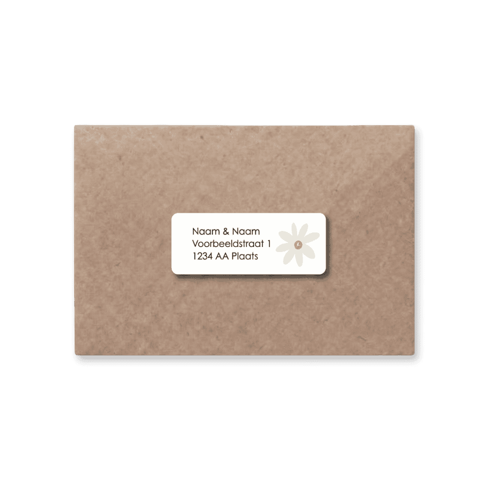 Adresstickers voor bij je geboortekaartje met madeliefje. Maak je geboortepost helemaal af met bijpassende adresstickers.