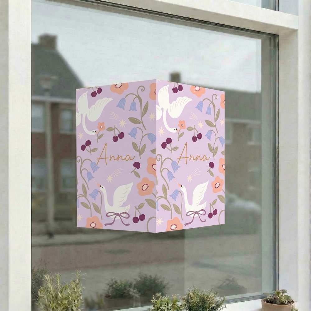Raambord op basis van het geboortekaartje. Een kleurrijk ontwerp met vrolijke doodles van een kers, gans, strikje, sterren en bloemen. Onderdeel van onze collectie Studio Dijs x Froukje. Je past het ontwerp eenvoudig aan in onze online ontwerptool. Hulp nodig? Mail ons gerust, we helpen je graag.