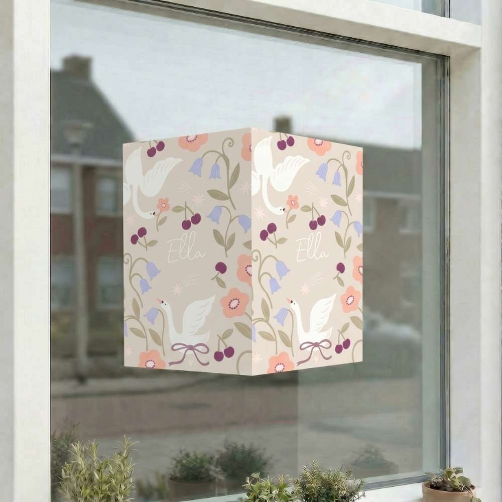Raambord op basis van het geboortekaartje. Met een beige achtergrond en lieve illustraties van zwanen, kersen en bloemen. Onderdeel van onze collectie Studio Dijs x Froukje. Je past het ontwerp eenvoudig aan in onze online ontwerptool. Hulp nodig? Mail ons gerust, we helpen je graag.