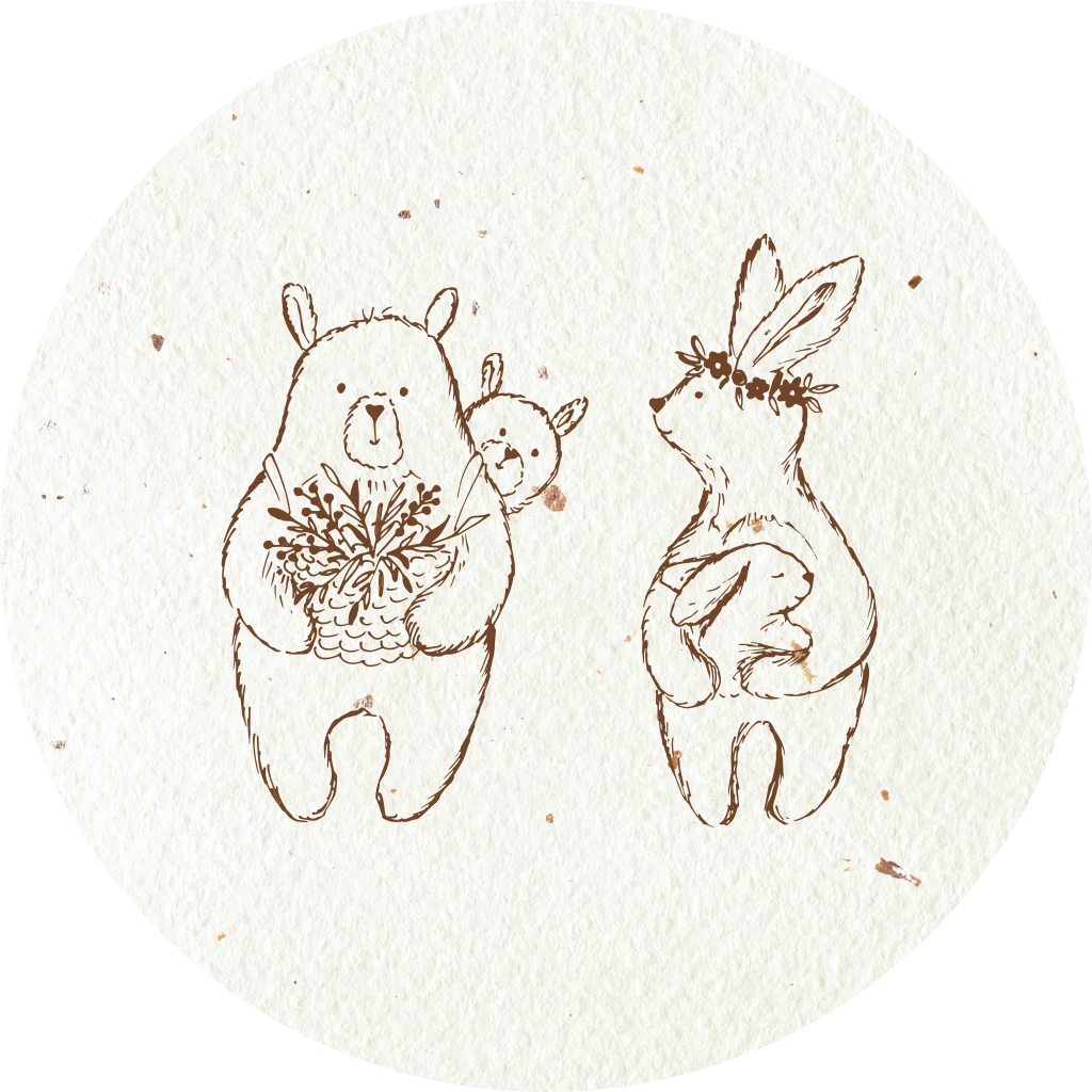 25 geboorte stickers met lieve beertjes en konijntjes.