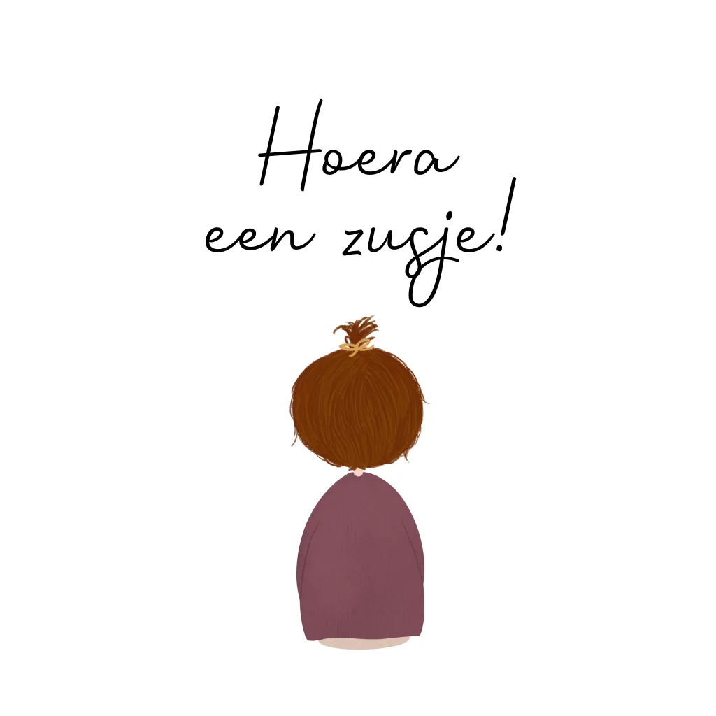 Sticker traktatie hoera een zusje brunette meisje