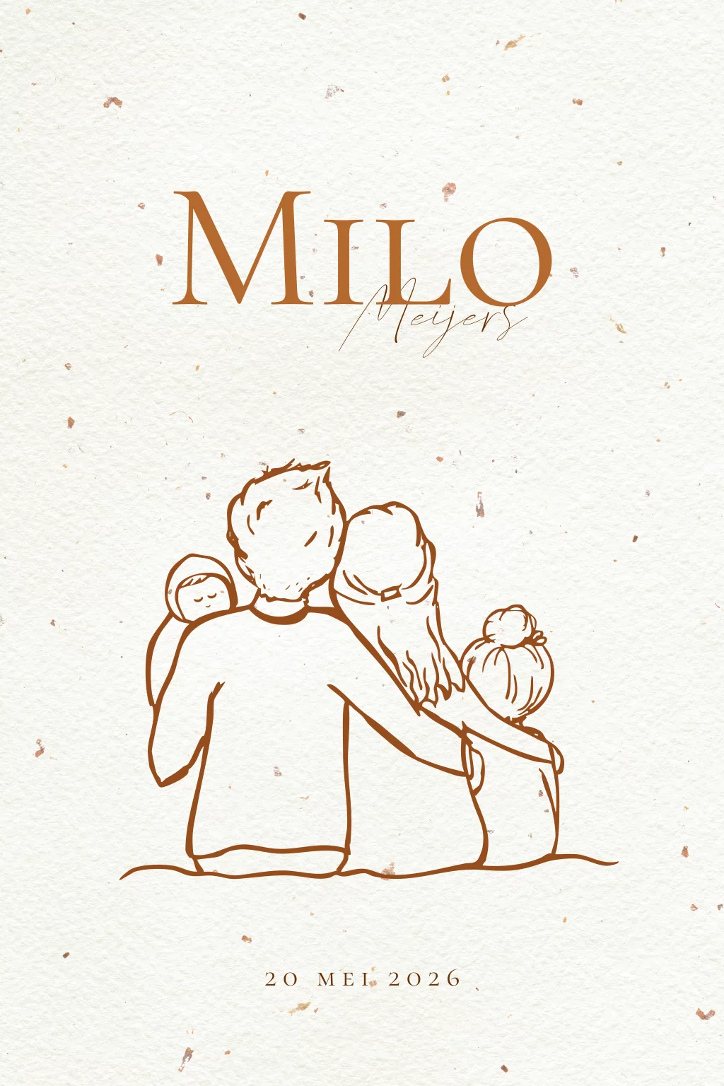 Tuinbord op basis van het geboortekaartje met lijntekening van het gezin. Bekijk bij de afbeeldingen in de online ontwerptool nog veel meer afbeeldingen van gezinnen of mail ons voor een aanpassing op maat.