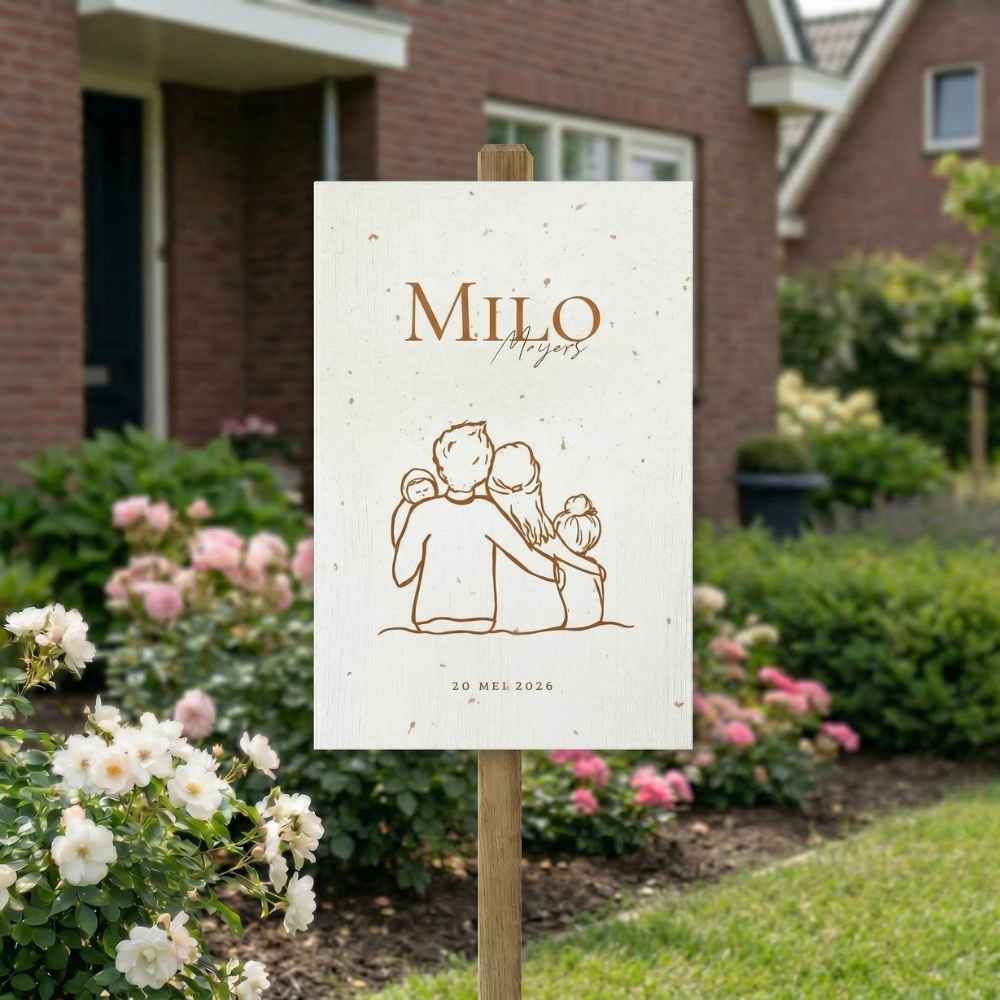 Tuinbord geboorte lijntekening gezin