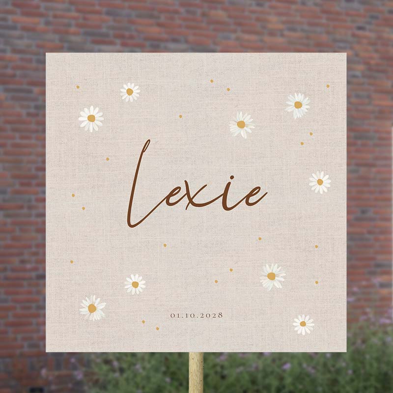 - Sanne“Heel blij met de duurzame collectie van studio Dijs. Zo kun je toch op een iets verantwoordelijke manier je geboortekaartjes versturen. Ze zijn prachtig geworden, ook het geboortebord is echt een aanrader! De kleuren maar ook het gemak van het aanpassen!”