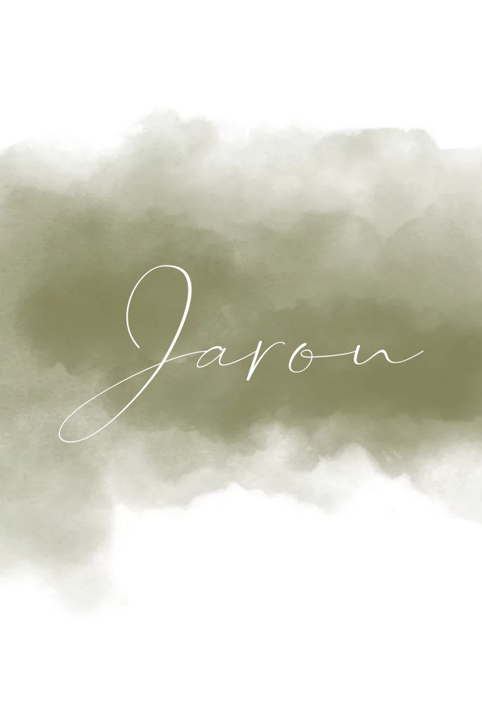 Geboortekaartje met groene watercolor achtergrond. De naam op de voorzijde staat in goudfolie. Deze pas je makkelijk aan in een andere foliekleur!