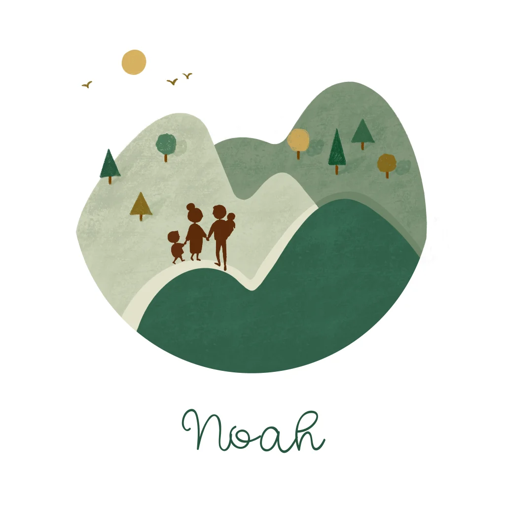 Geboortekaartje bergen groen silhouette gezin vier