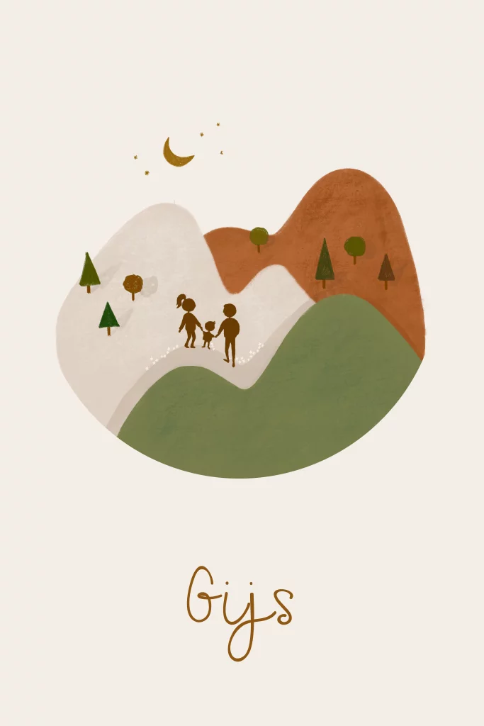 Geboortekaartje met een papa, mama en klein zoontje. Heb jij een andere gezinssamenstelling? Stuur ons een mailtje. Wij passen het kaartje voor je aan!