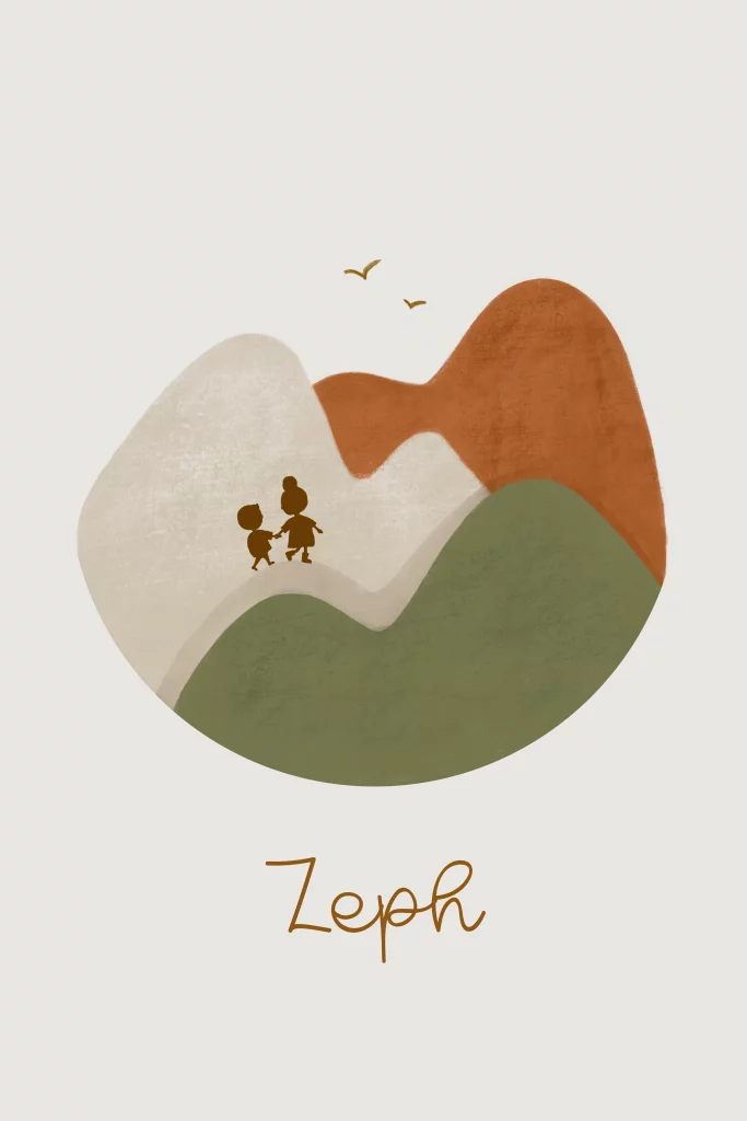 Geboortekaartje met een grote zus die haar kleine broertje vasthoudt. Samen avonturen maken!