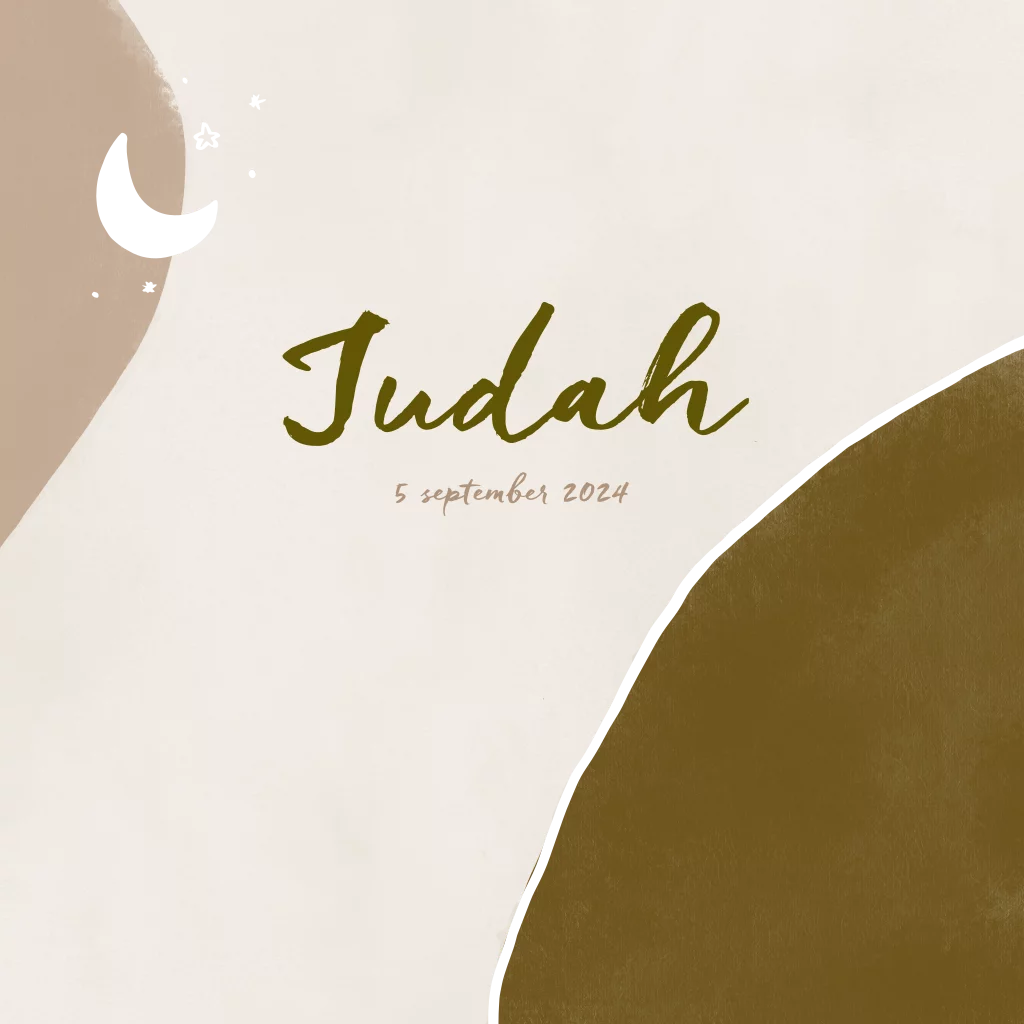 Een hip geboortekaartje halve cirkels in zandkleur en olijfgroene kleur. Op de voorzijde met een goudfolie lijntje voor een extra uniek effect.