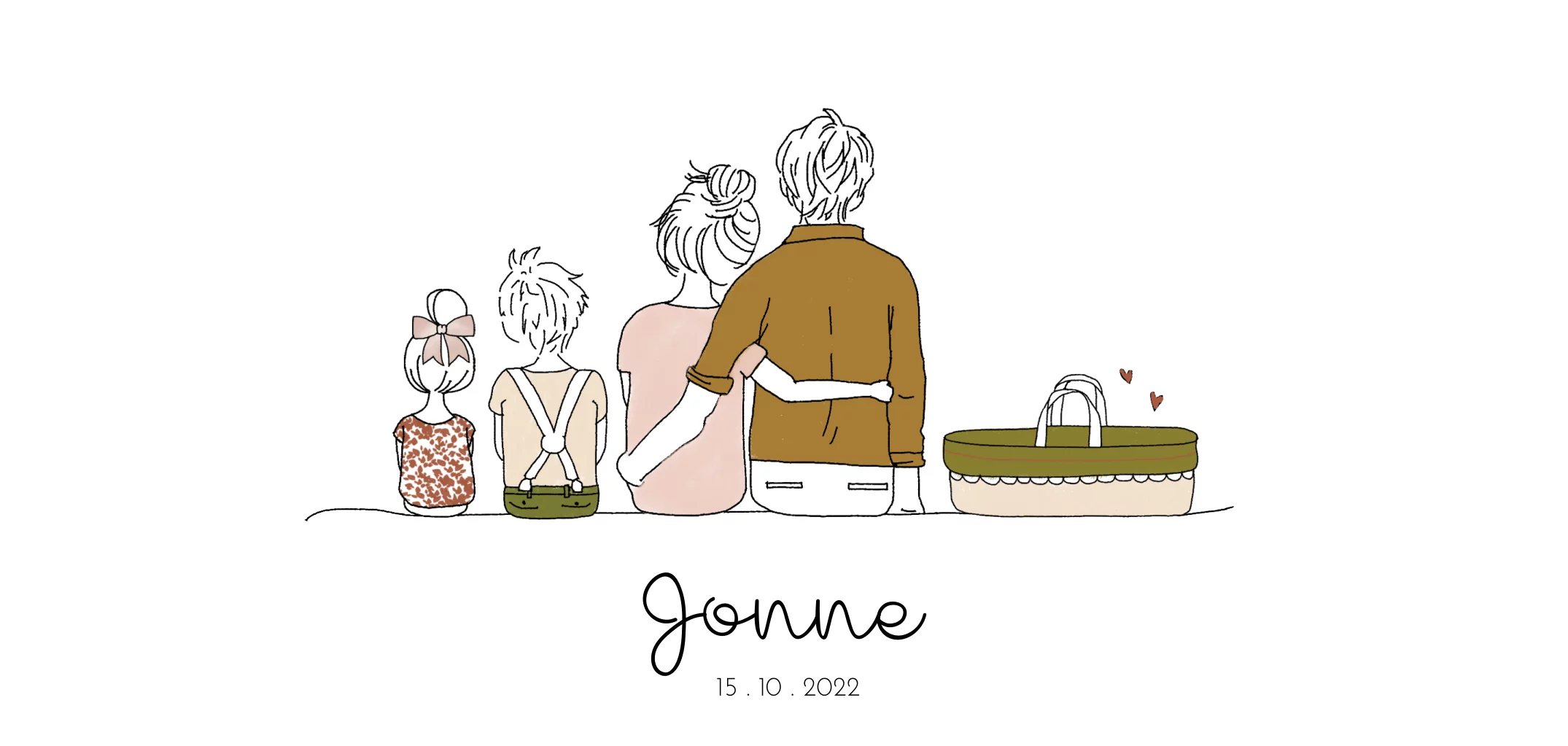 - Kelly“Bij Studio Dijs hebben wij de geboortekaartjes en een geboortetegel besteld. We zagen een bijna perfecte illustratie die probleemloos werd aangepast toen we mailden naar Studio Dijs. Hierdoor past de illustratie volledig bij ons. Onwijs blij mee en we hebben heel veel enthousiaste reacties gekregen op het kaartje!”