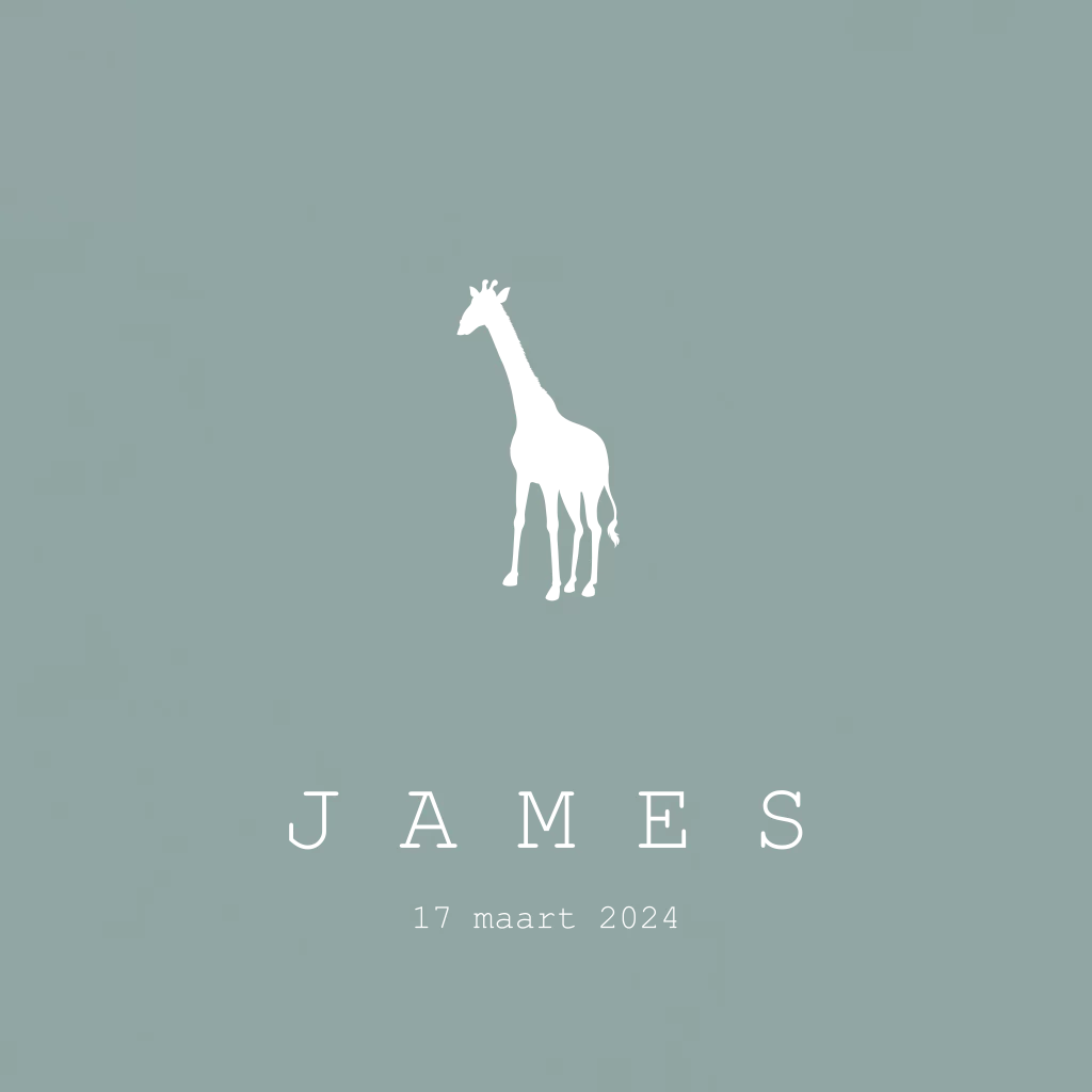 Geboortekaartje grijsblauw met giraffe