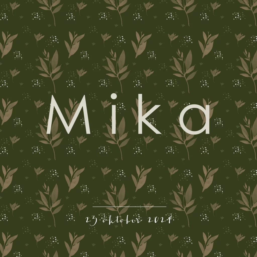 Geboortekaartje met een groen blaadjes patroon.