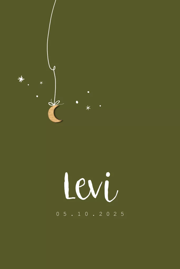 Geboortekaartje houten maan groen