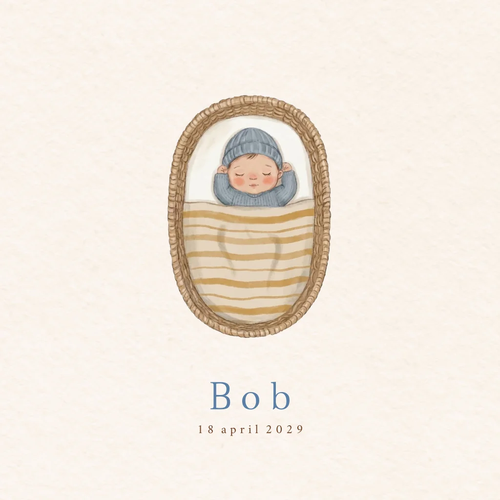Geboortekaartje jongen baby mozesmandje