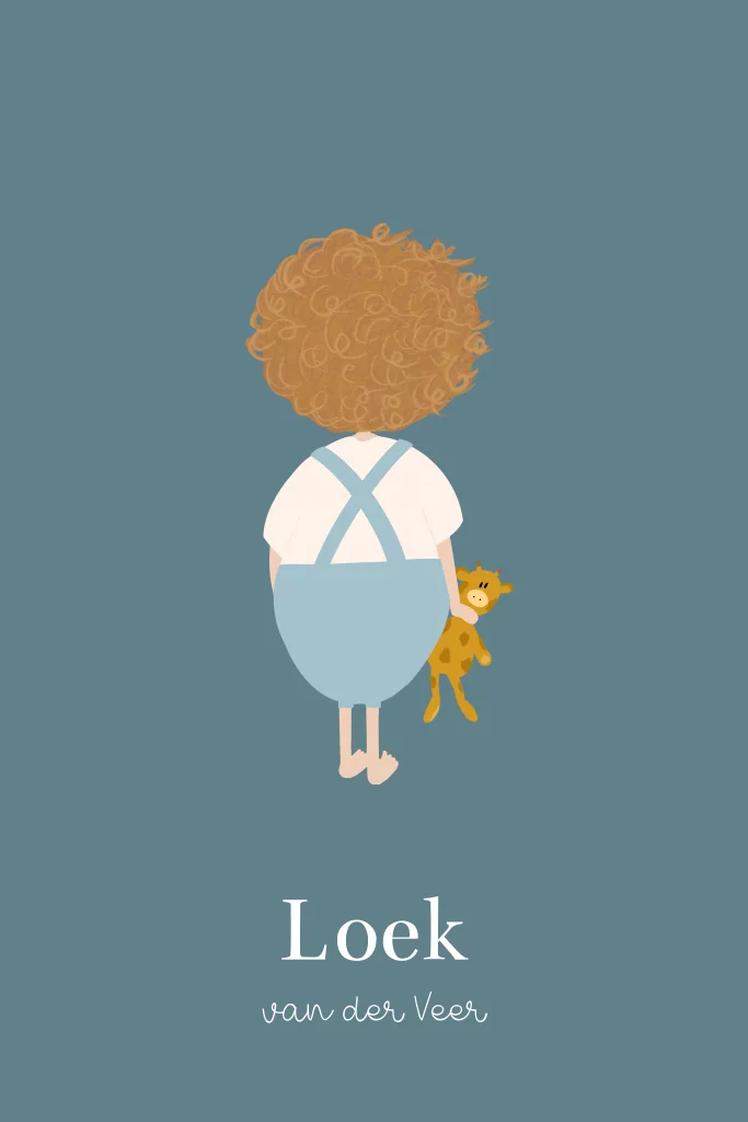 Geboortekaartje jongen blond krullen knuffel giraffe