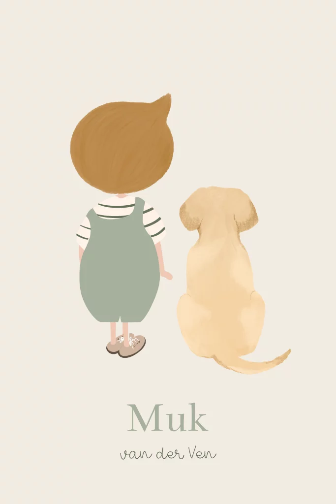 - Kelly“Bij Studio Dijs hebben wij de geboortekaartjes en een geboortetegel besteld. We zagen een bijna perfecte illustratie die probleemloos werd aangepast toen we mailden naar Studio Dijs. Hierdoor past de illustratie volledig bij ons. Onwijs blij mee en we hebben heel veel enthousiaste reacties gekregen op het kaartje!”
