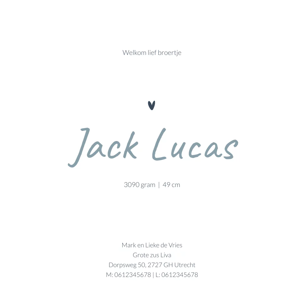 Geboortekaartje jongen broertje grote zus blond babykamer