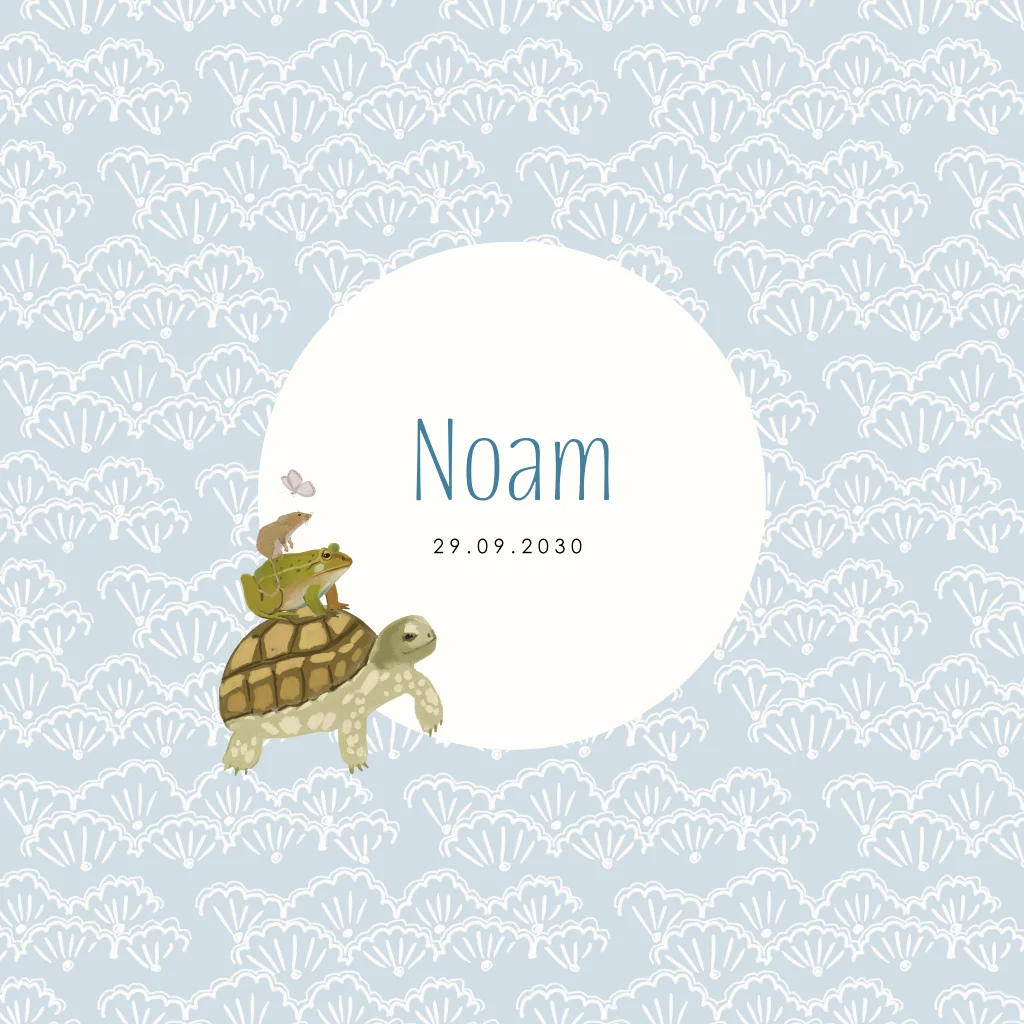 Geboortekaartje jongen dieren stapel schildpad kikker muis