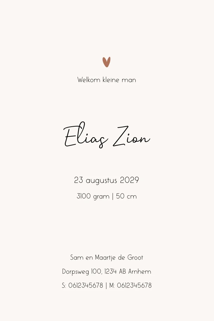 Een minimalistisch en verfijnd geboortekaartje dat perfect past bij ouders die houden van natuurlijke illustraties en zachte kleuren. Het ontwerp is eenvoudig aan te passen in de editor, zodat je het kaartje helemaal naar wens kunt personaliseren.