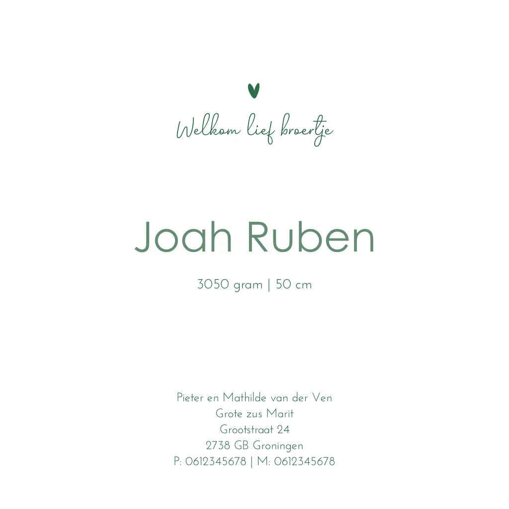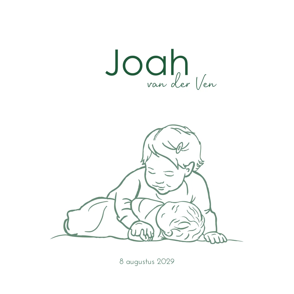 Lief en klassiek geboortekaartje voor een jongen. Met een lijntekening van een grote zus die liggend bij haar baby broertje aan het kijken is.