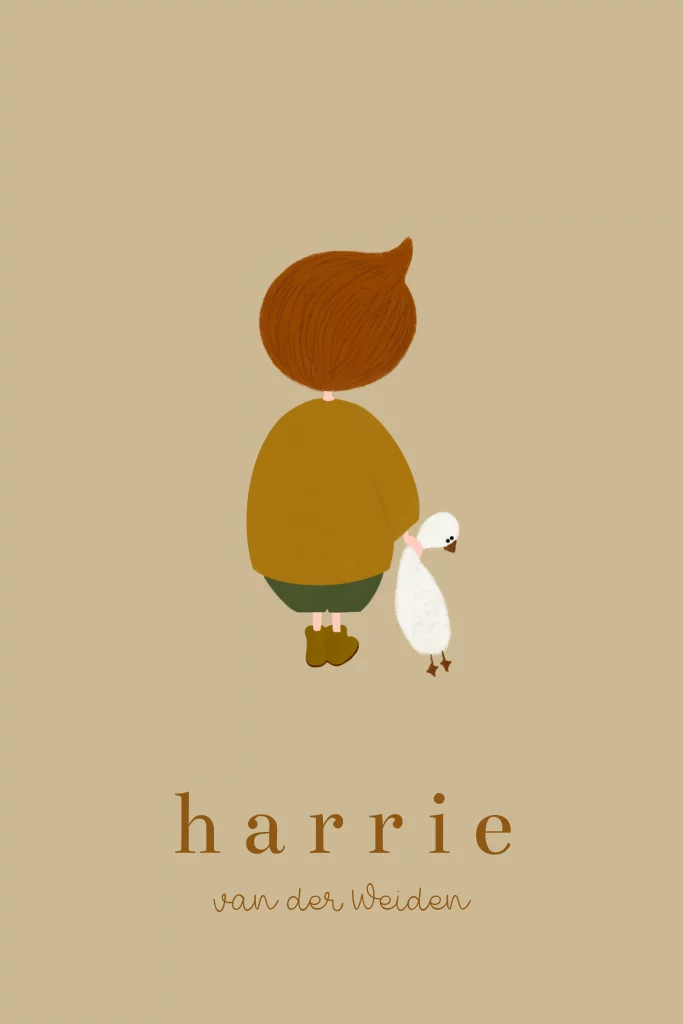 Een minimalistisch geboortekaartje met een klein jongetje met een knuffel gansje in zijn hand. Kindjes met een andere haarkleur vind je bij de afbeeldingen onder 'kindjes'.