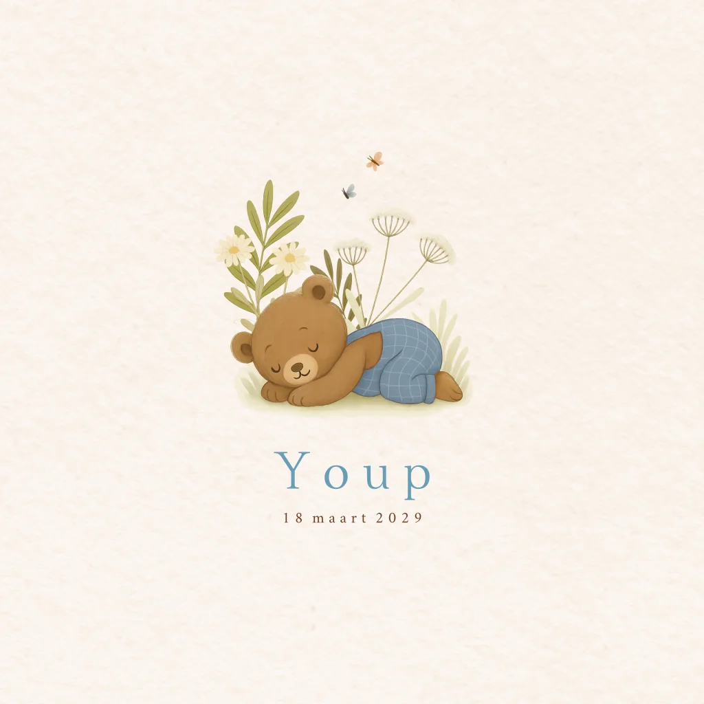 Geboortekaartje jongen slapend beertje tuinbroekje