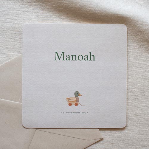 Geboortekaartje jongen speelgoed eend wagonnetje