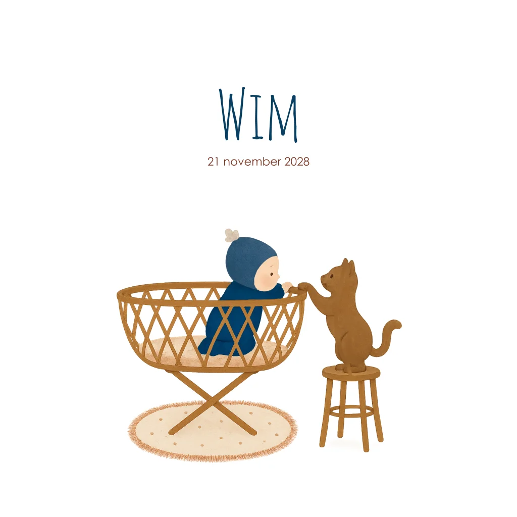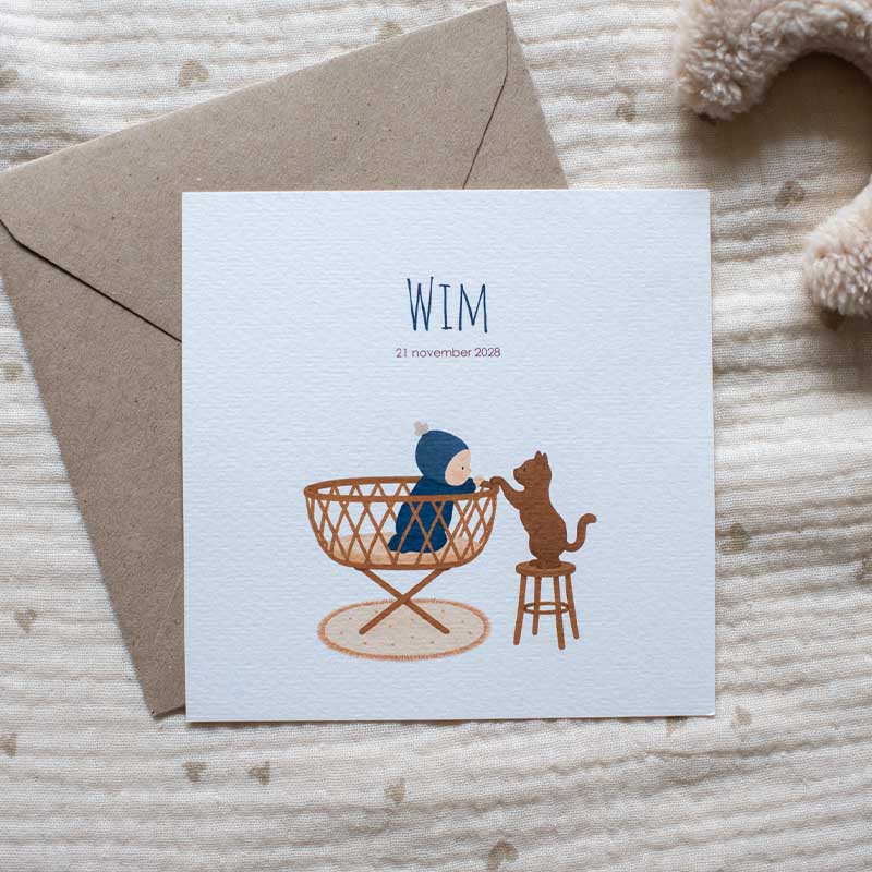 Geboortekaartje jongen wiegje huisdier poes