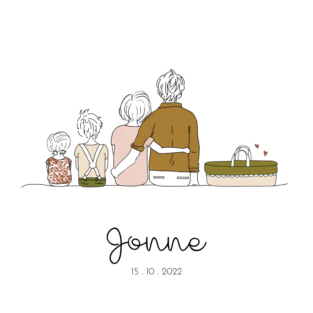 - Kelly“Bij Studio Dijs hebben wij de geboortekaartjes en een geboortetegel besteld. We zagen een bijna perfecte illustratie die probleemloos werd aangepast toen we mailden naar Studio Dijs. Hierdoor past de illustratie volledig bij ons. Onwijs blij mee en we hebben heel veel enthousiaste reacties gekregen op het kaartje!”